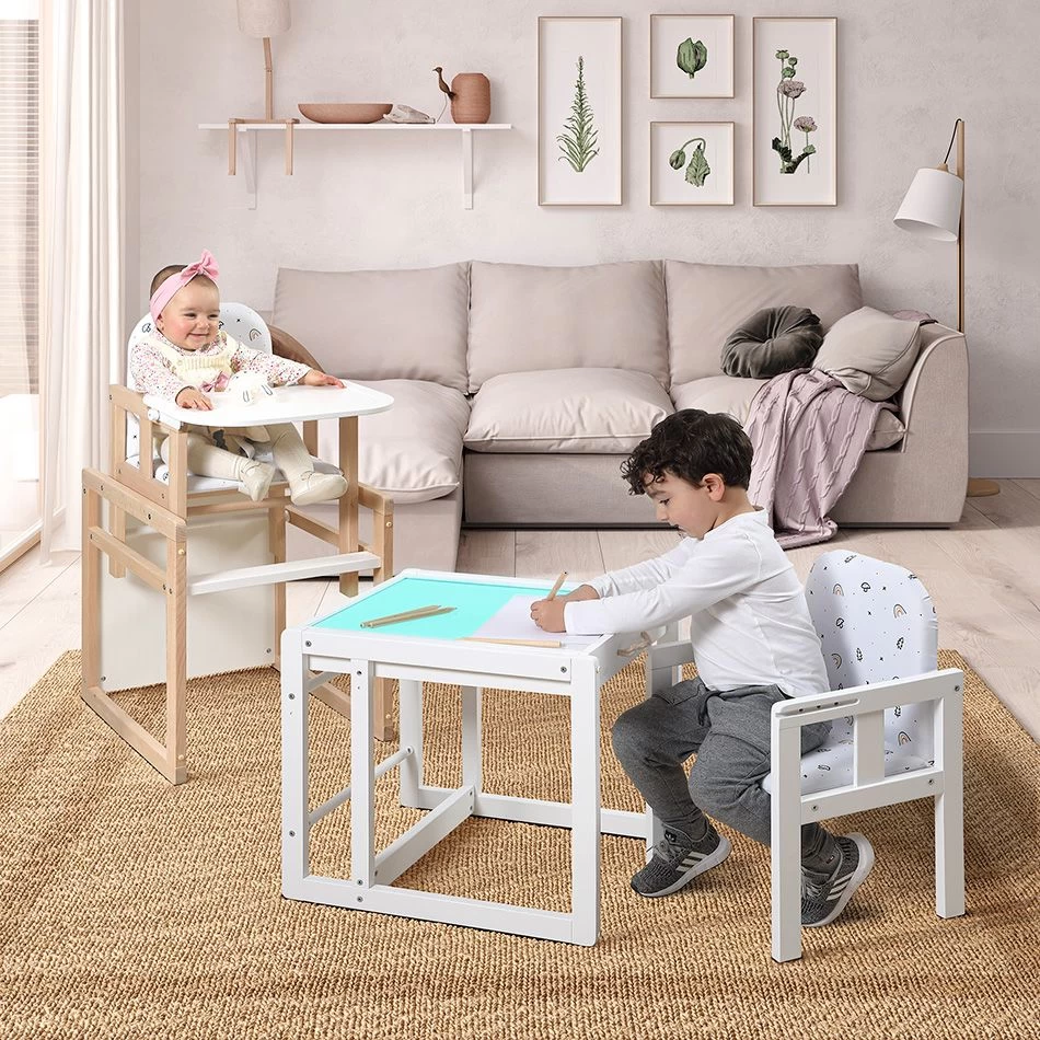 Grâce à sa conception polyvalente, vous pouvez la transformer en table et en chaise pour enfants en un seul geste, sans avoir besoin d’outils. Et vous pouvez la choisir dans sa version avec une table traditionnelle en bois ou avec une table lumineuse.