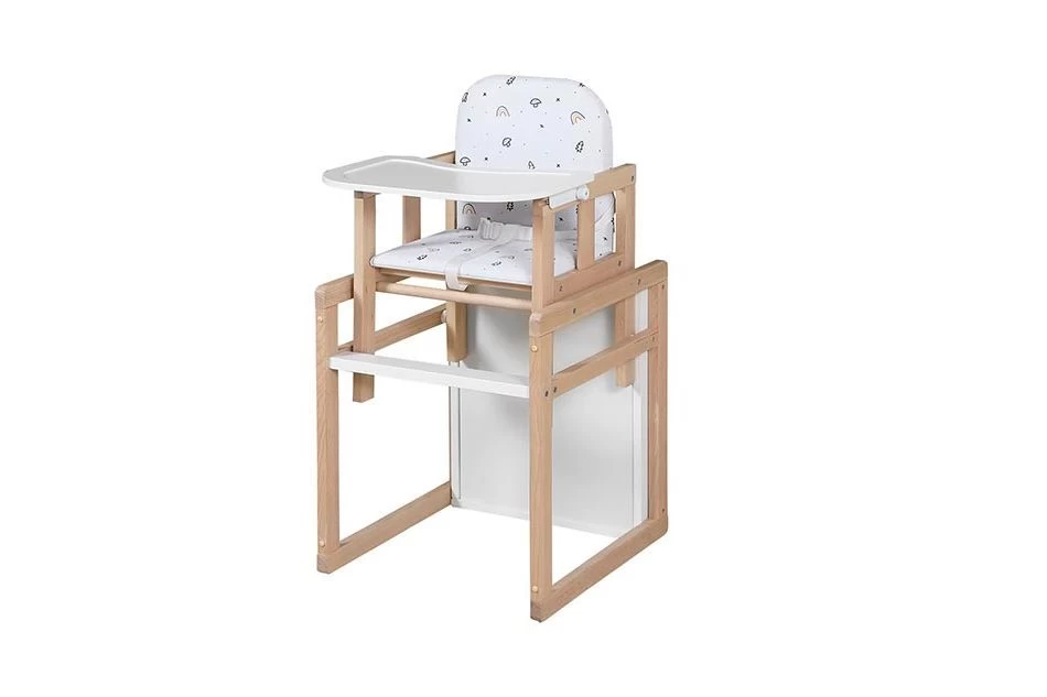 La chaise haute Tik-Tak est la chaise la plus évolutive de Micuna. Il s’agit d’une chaise haute avec plateau réglable en trois positions, disponible en deux couleurs: blanc et waterwood-blanc, et dotée d’un joli et amusant revêtement arc-en-ciel facile à laver.