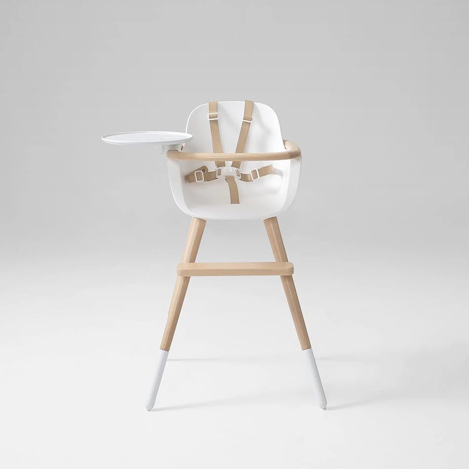 Prêt à conquérir le monde? La chaise haute OVO est livrée de série avec la sangle et le harnais de sécurité en similicuir.