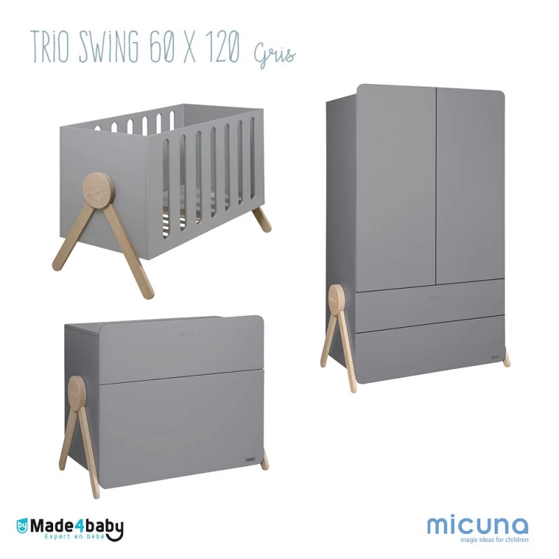 Nous vous proposons ce superbe duo Micuna composé de la magnifique commode Swing et du lit 60×120 de la même collection.