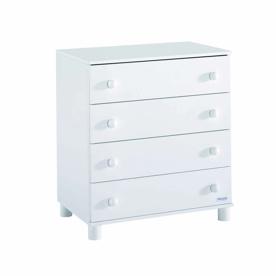 La commode Micuna avec ses quatre tiroirs vous offre beaucoup d’espace de rangement pour les affaires de bébé. Possibilité de changer les poignées.
