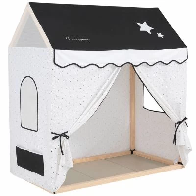 – Glisser le tissu sur le dessus et le fixer à la structure avec les liens.