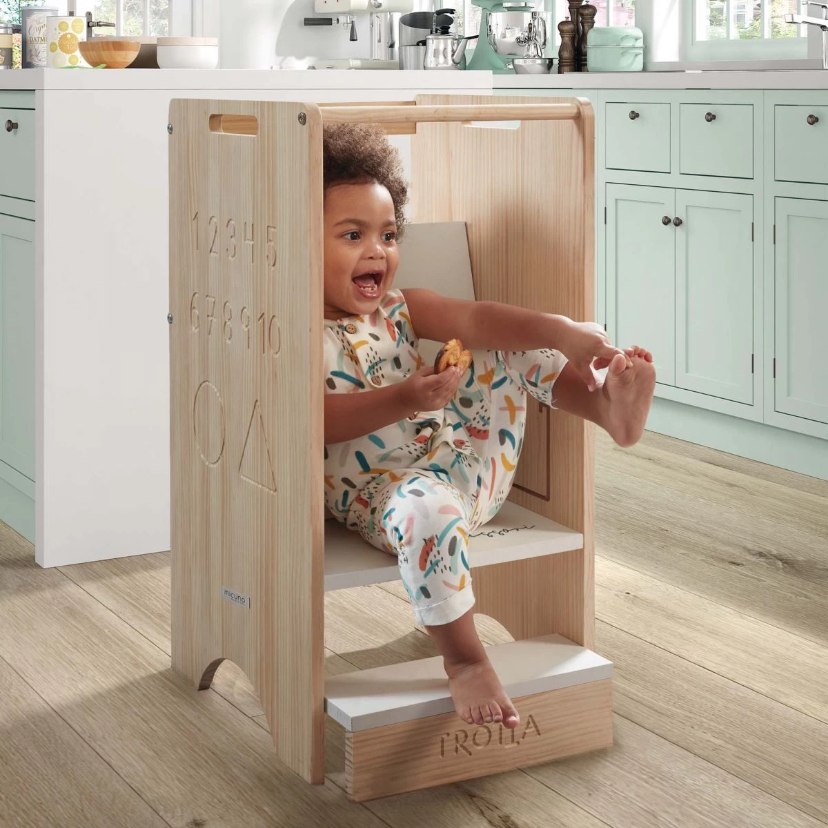 La tour d’apprentissage évolutive et transformable TROTTA sera d’une grande aide dans les premières années de la vie de l’enfant, car au stade de plus d’intérêt et de curiosité, elle les aidera à atteindre les endroits difficiles d’accès tels que la cuisine ou le banc de toilette.