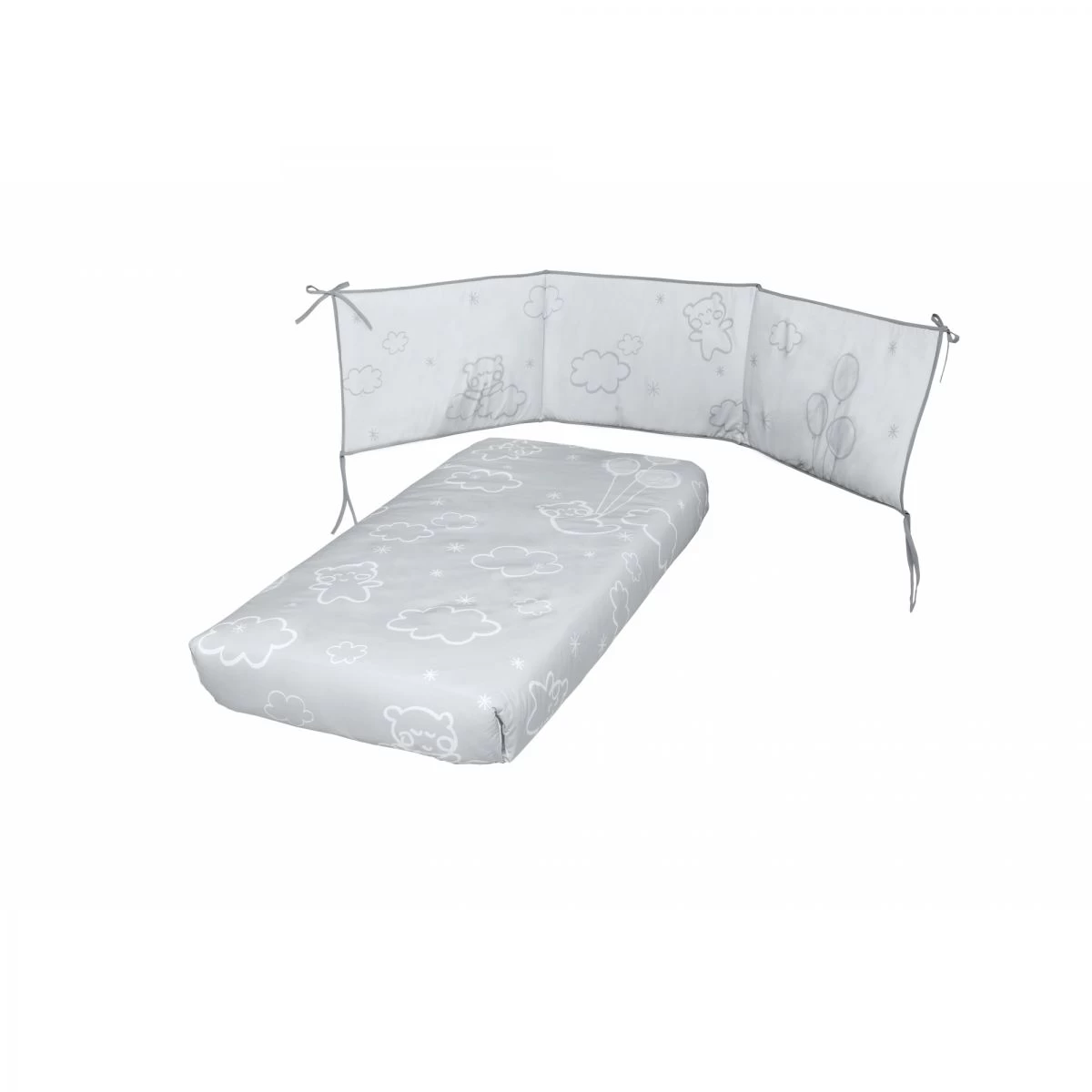 Le joli kit tour de lit et couette de la collection Dolce Luce apportent confort et douceur à votre enfant. Le petit ours douillet qui dort paisiblement au milieu des nuages, invite bébé à rêver à côté de lui.